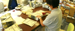 封入作業、ホッチキス留めなどの付帯業務も社内一貫体制で行っております。